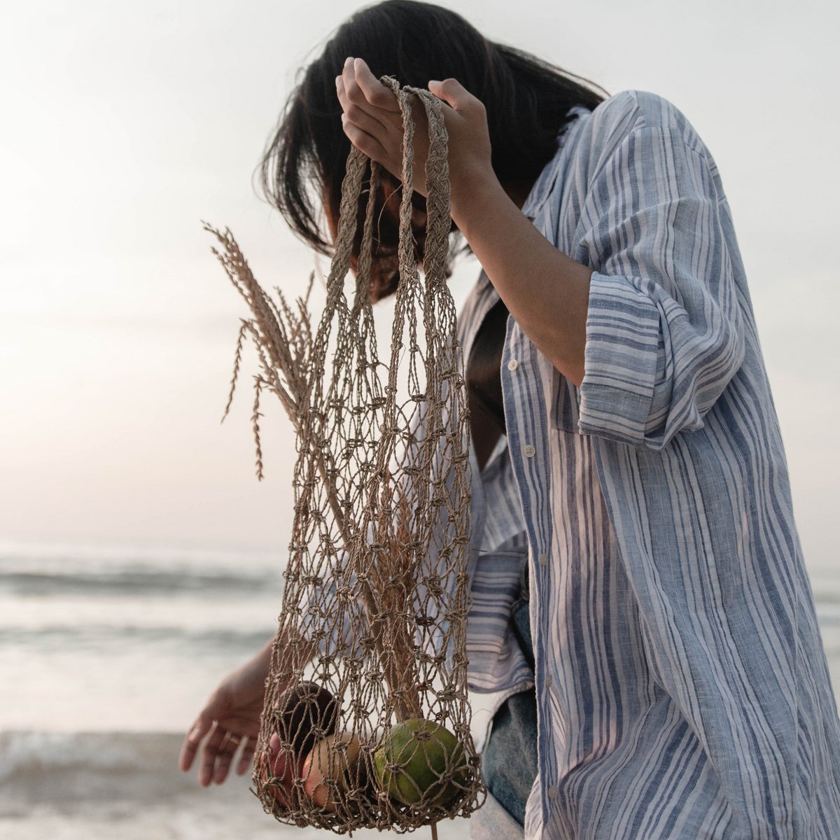 Jemari ist eine leichte Tragetasche aus geflochtenen Bastblättern. Zusammengefaltet passt es in jede Handtasche und eignet sich perfekt, um beispielsweise Ihre Lernmaterialien mit in die Universitätsbibliothek zu nehmen oder Ihre Einkäufe zu transportieren. Sie können Jemari auch als wiederverwendbare Obsttasche oder als robuste und platzsparende Tasche im Urlaub verwenden.