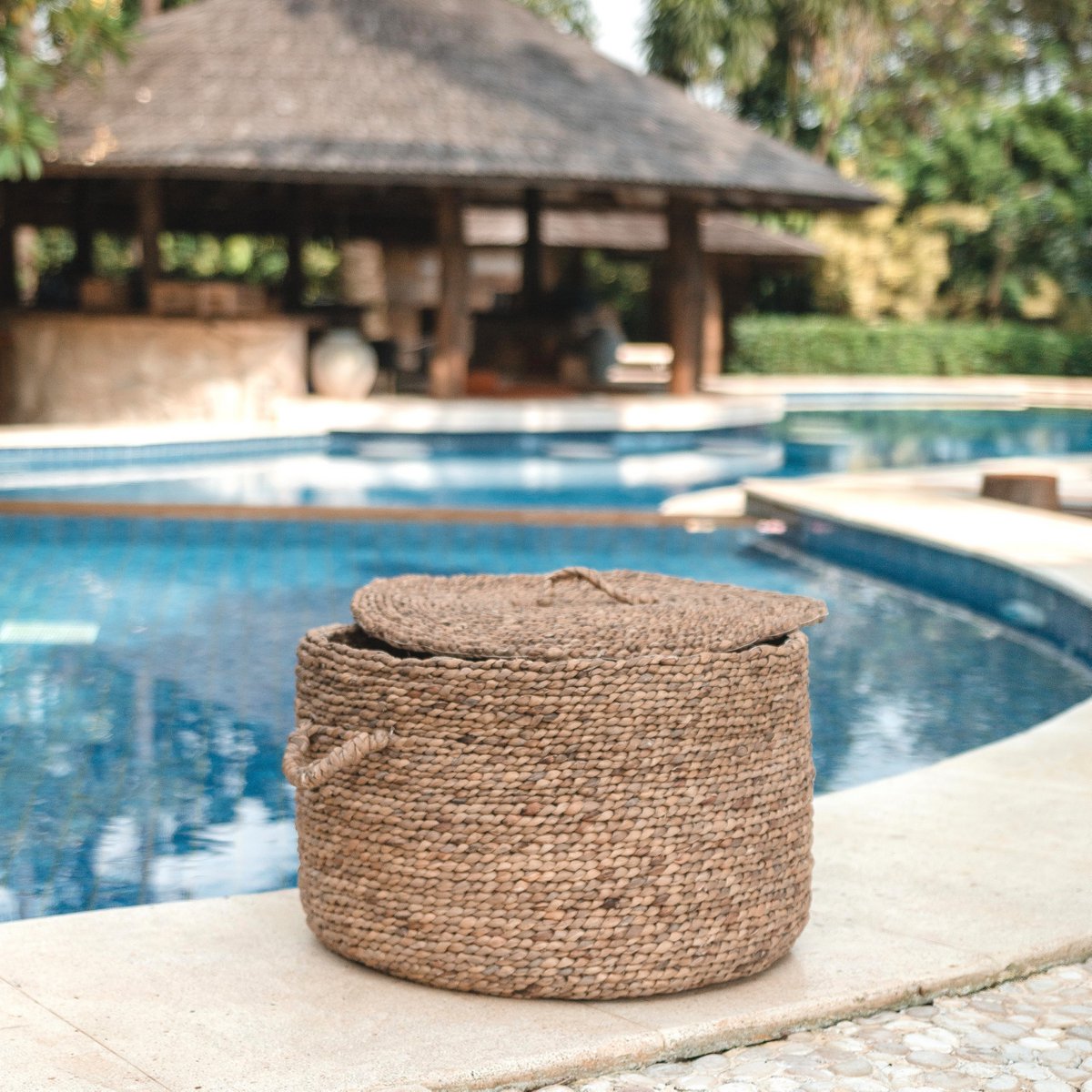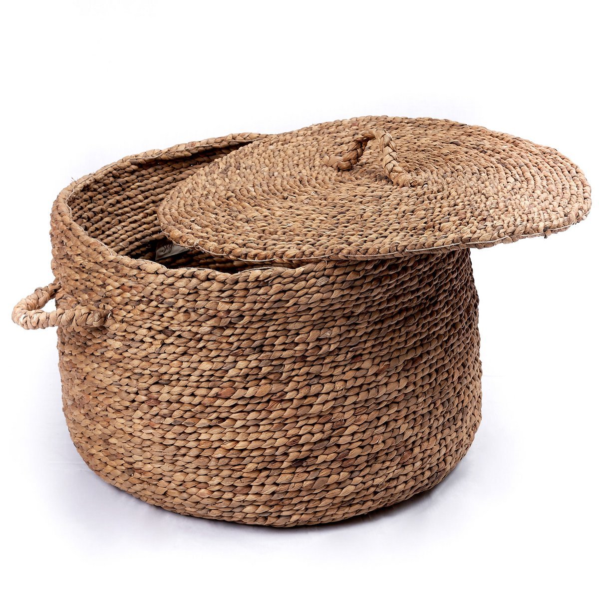 Unser sorgfältig handgeflochtener Umbul-Korb aus langlebiger Wasserhyazinthe bietet mit seinem großzügigen Durchmesser von 57 cm und dem praktischen Deckel ausreichend Platz, um Kinderspielzeug oder Wäsche stilvoll und ordentlich aufzubewahren. Die Kombination aus nachhaltigen Materialien und anspruchsvollem Design macht den runden Korb nicht nur zu einem funktionalen Aufbewahrungselement, sondern auch zu einem stilvollen Accessoire für Ihr Zuhause.