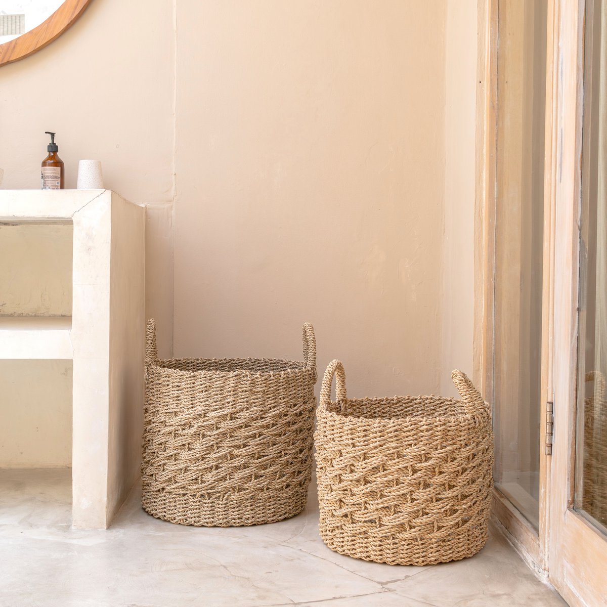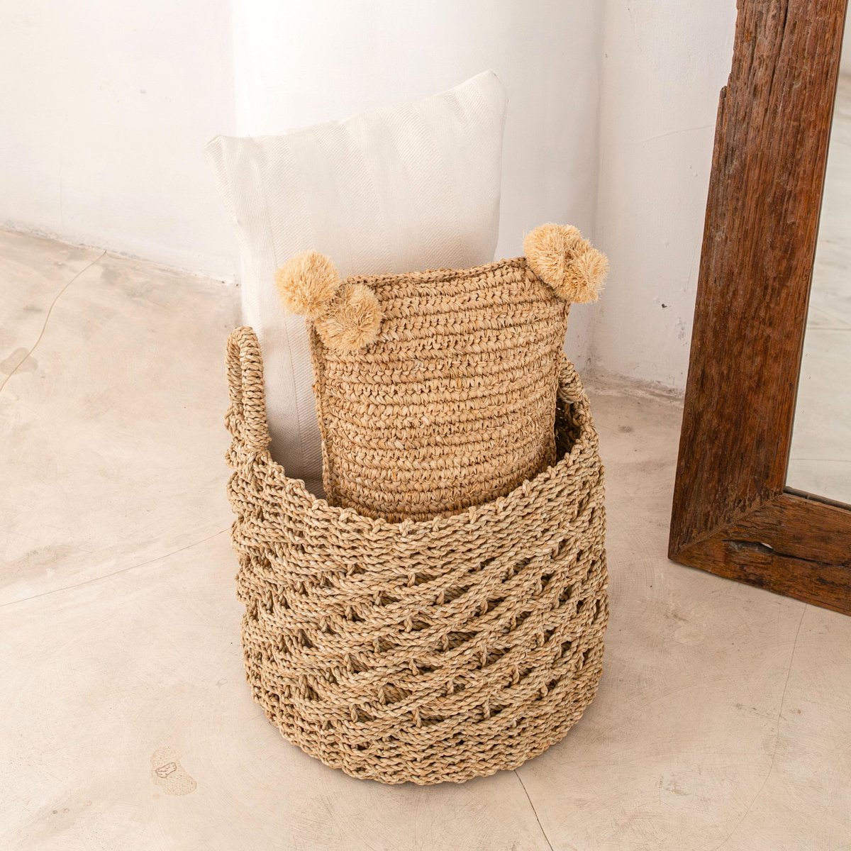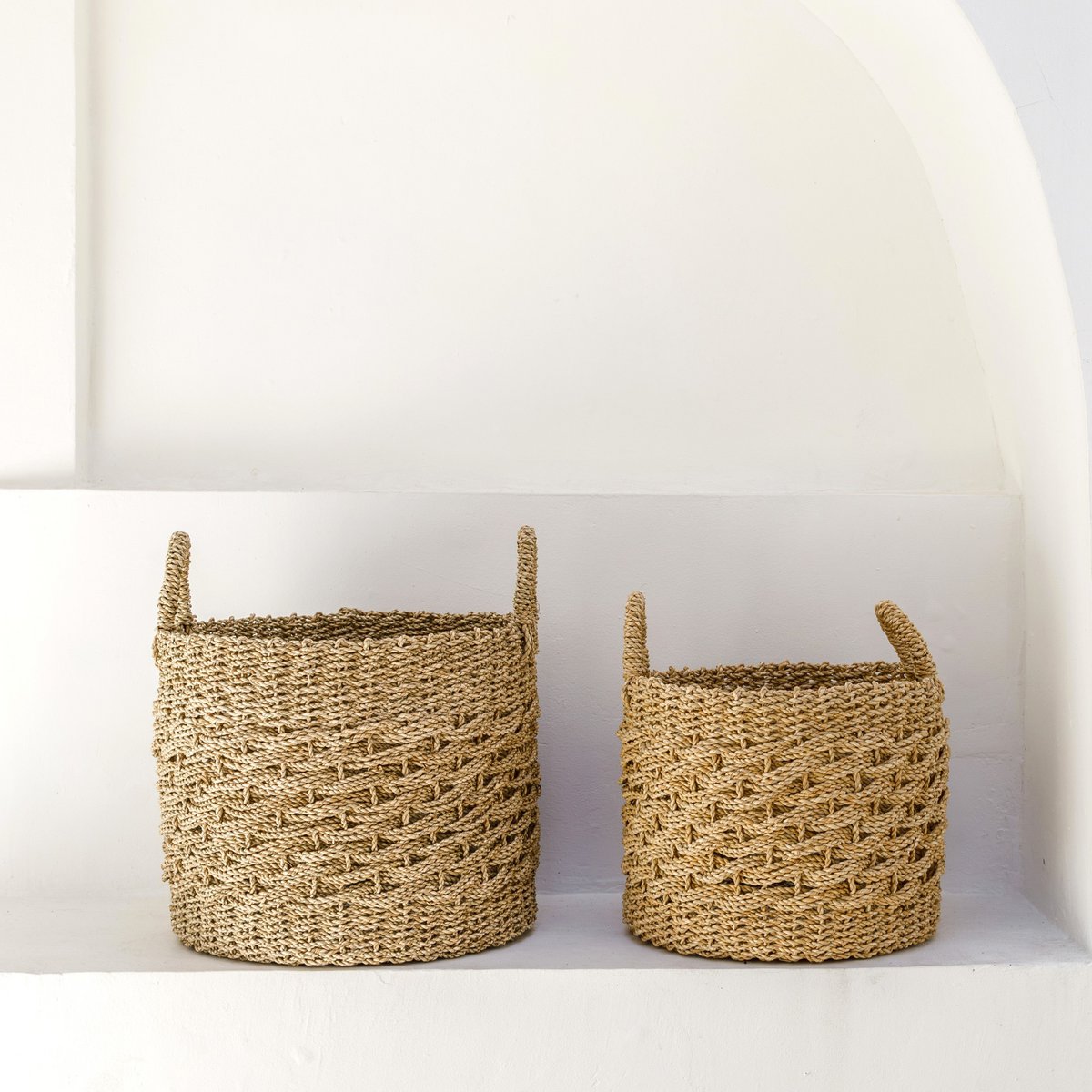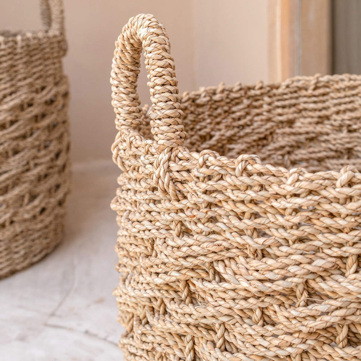 Doch er ist nicht nur schön anzusehen, sondern auch praktisch: Dank der seitlichen Griffe und des leichten Materials lässt er sich leicht tragen und kann als Wäschekorb oder als Behälter für andere Kleinigkeiten verwendet werden. Durch die Flexibilität des verwendeten Seegrases passt sich der Korb, der in zwei verschiedenen Größen erhältlich ist, an unterschiedliche Inhalte an.
