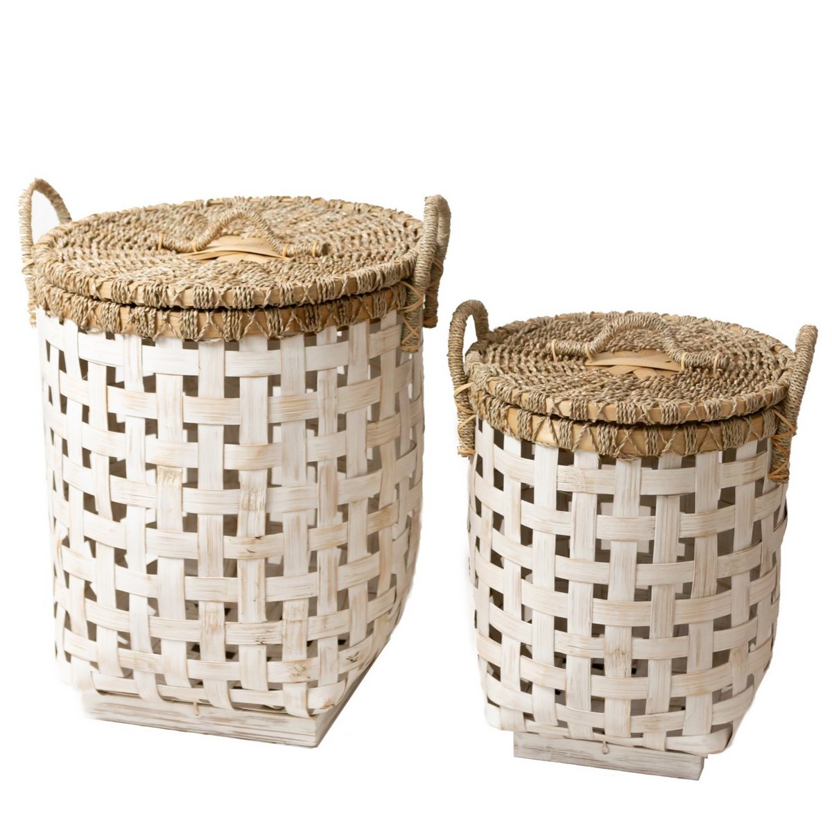 Ein praktischer Deckelkorb aus weißem Bambus in zwei verschiedenen Größen – das ist unser Iraya. Besonders gut passt die moderne Lichtfarbe zu Wohnstilen mit viel hellem Holz und Textildekorationen wie Wandbehängen, Kissen und Decken.