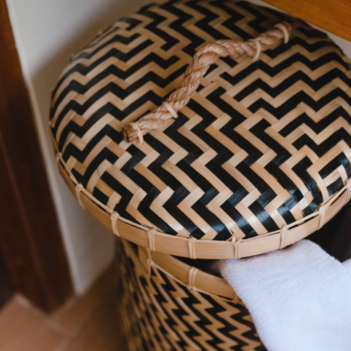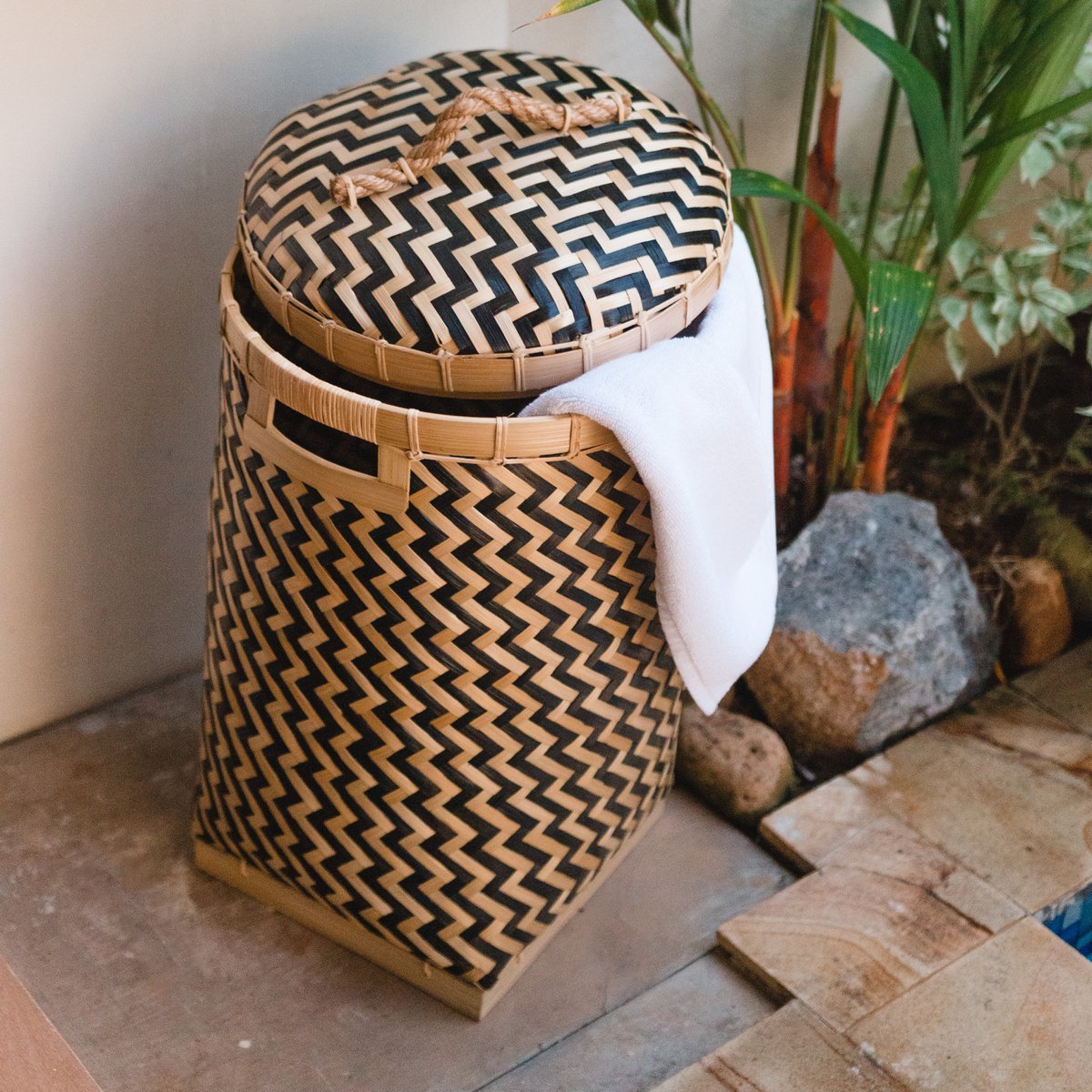 Er eignet sich perfekt als Wäschesammler oder als formschöner Stauraum für alles, was schnell und einfach verstaut werden muss. Es besteht aus nachhaltigem Bambus, einem schnell nachwachsenden Rohstoff, schont die Umwelt und verleiht Ihrem Zuhause einen Hauch von Natürlichkeit und Schönheit.