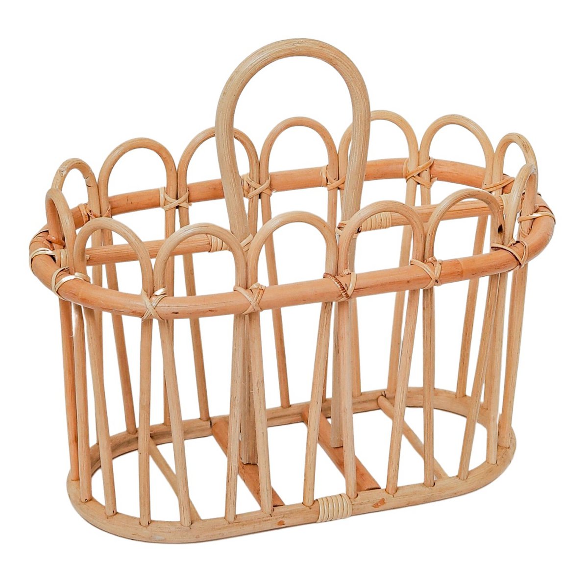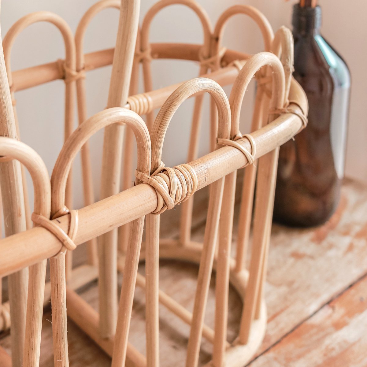 Unser Kuno-Zeitungskorb wird für Sie von auf Rattan spezialisierten Familienbetrieben gefertigt. Die elegant geschwungenen, sonnengebleichten Rattanfasern machen ihn zur idealen Ergänzung für Häuser in hellen Farbtönen, zum Beispiel im Japandi-Stil.